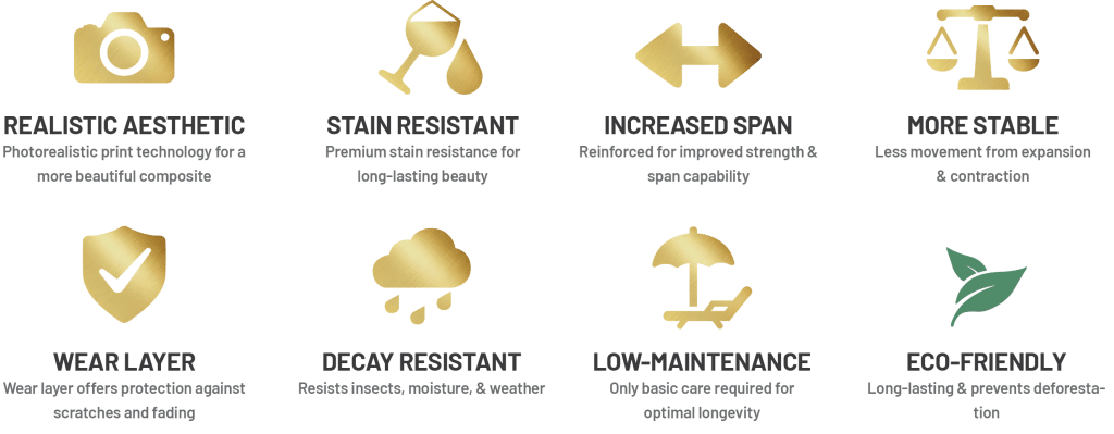 Pioneer redefines what composite decking is. For centuries, we’ve looked to the past, to the era when mighty timbers shaped our world and craftsmanship was bound by the tools of its time. But innovation has evolved. Today, human ingenuity has achieved what once seemed impossible. Engineered with next-generation technology, Pioneer composite captures the soul and beauty of hardwoods in every grain and hue. It delivers the ultimate timeless look of natural timber for decades to come, without the negative impact on our planet.