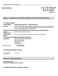 Vinyl PVC Railing Safety Data Sheet